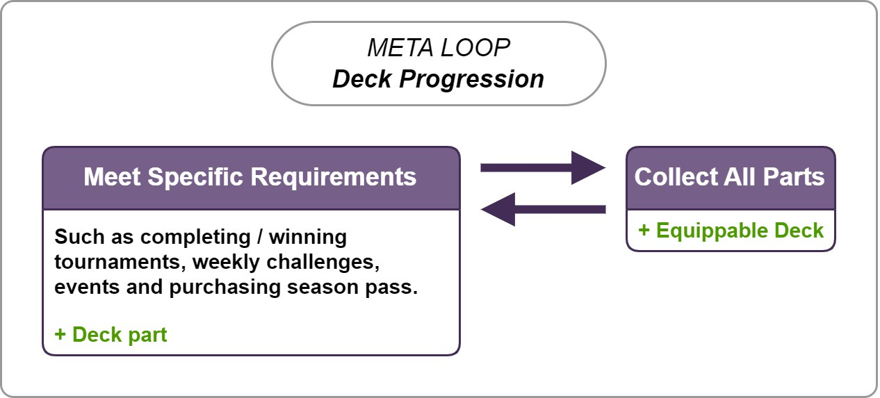 Deck parts can be obtained through progression in other meta layers to unlock new deck skins. It targets players who have already enjoyed the game and want to customize their gameplay experience. This feature becomes available after level 9.
