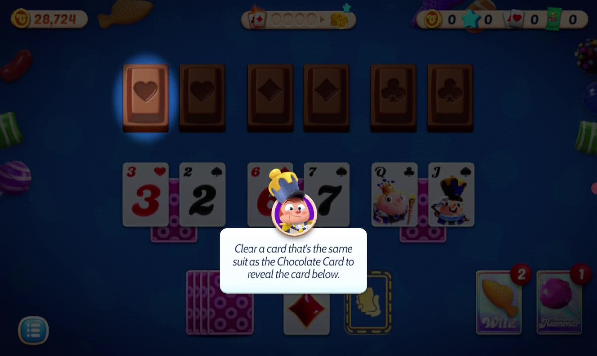 Chocolate Card requires a card of the same suit to be cleared in order to be revealed.