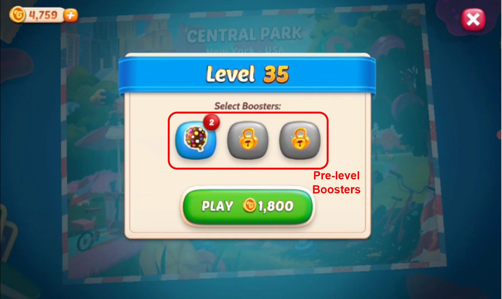 Do not use any pre-level boosters unless it is part of the tutorial, or due to the Win Streaks mechanic.