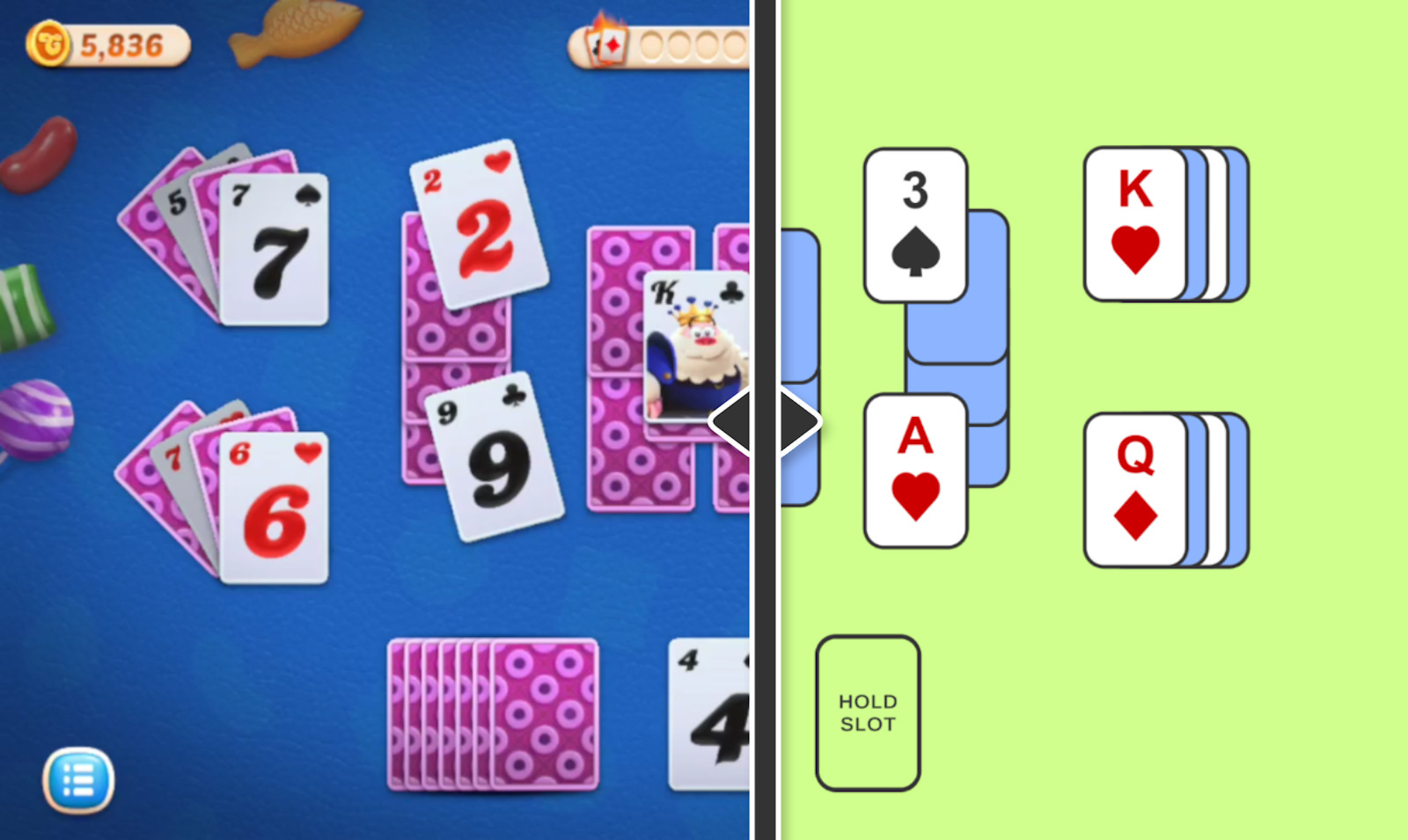 The hold slot requires more attention and also encourages the use of the undo booster. It adds more strategic depth and increases enjoyment by allowing for more consecutive card clearance from the board.