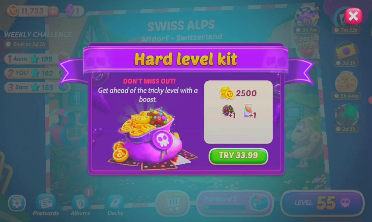 Candy Crush Solitaire also offers a Hard Level Kit offer just before super hard levels, as shown in the image above. It is a level specific pack, and it seems quite stingy in terms of content, as players are expected to use all in this level.